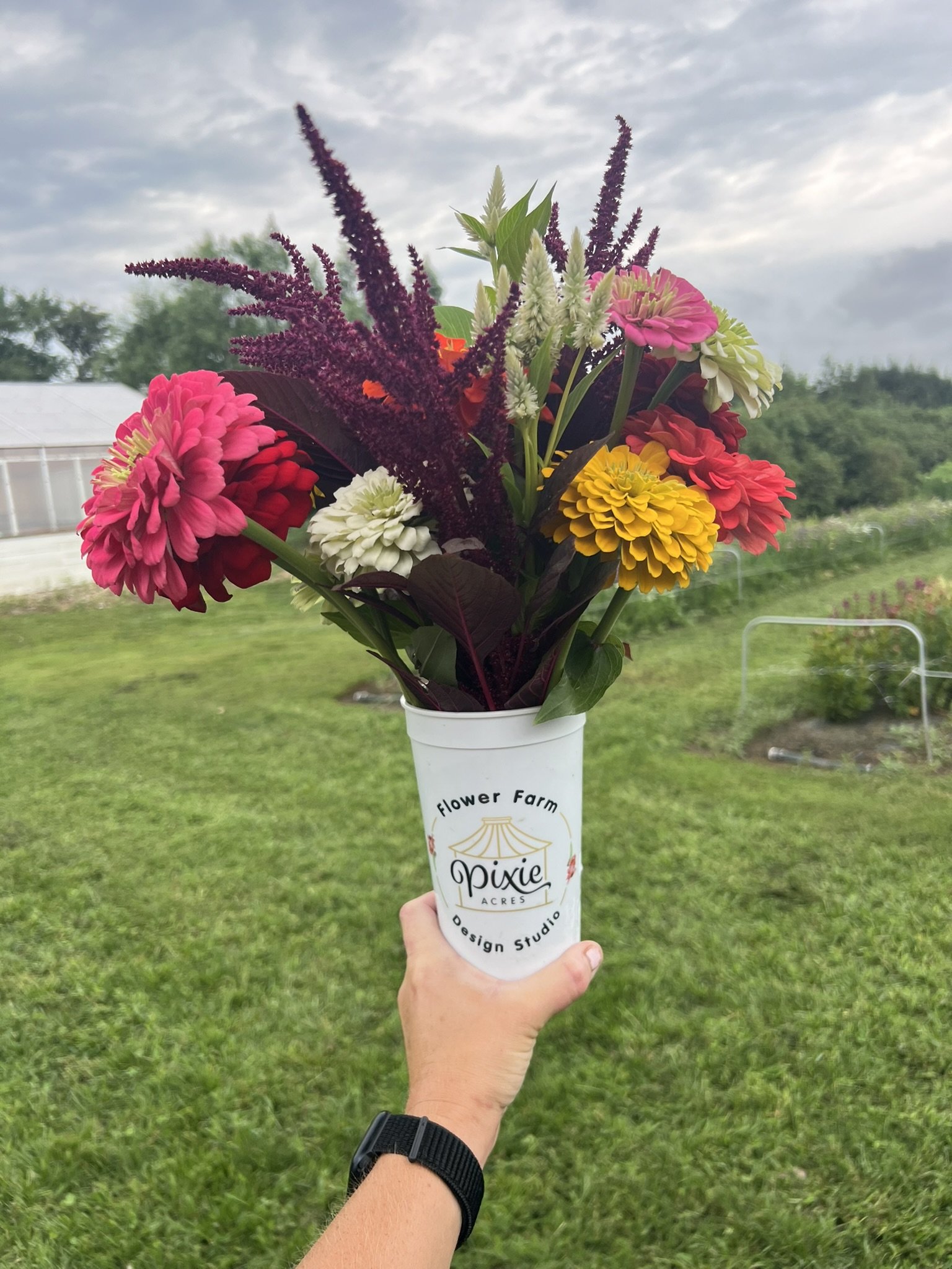 Categories: All Flowers Gifts Experiences All Flowers Gifts Experiences Quick View Lisianthus Bouquet from $40.00 Sold out Select Pickup/delivery Backroads Coffeehouse Farm Pickup Brookings Delivery Local Delivery Sold Out Added! Quick View Deluxe Seasonal Bouquet $40.00 Sold out Sold Out Added! Quick View Wrapped Seasonal Bouquet from $20.00 Sold out View Options Quick View On-Farm Workshop $71.98 Sold out August 6th 6:30PM August 27th 6:30PM Sold Out Added! Quick View U-Pick Farm Event from $10.00 Sold out View Options Quick View Bloom Bar Rental from $365.00 Select Bloom Bar Rental Bloom Bar Only (200 stems + Display Rental) Bloom Bar + 1 Bulk Bucket Bloom Bar + 2 Bulk Buckets Bloom Bar + 3 Bulk Buckets Bloom Bar + 4 Bulk Buckets Add To Cart Added! Quick View Vase Arrangement from $40.00 Sold out View Options Quick View REVIVE Studio + Pixie Acres $40.00 Sold out Sold Out Added! Quick View Ranunculus Bouquet from $35.00 Sold out View Options Quick View Pixie Acres T-Shirt $27.00 XS S M L XL XXL Add To Cart Added! Quick View Big Poppy T-Shirt $27.00 XSmall Small Medium Large XLarge XXLarge Add To Cart Added! Quick View Pixie Acres Sweatshirt $39.00 Small Medium Large XLarge XXLarge Add To Cart Added! Quick View Tea Towel $12.00 Dahlia Poppy Sunflower Add To Cart Added! Quick View Wine Tumbler $18.00 Add To Cart Added! Quick View Gift Certificates from $25.00 Select Amount $25 $50 $75 $100 Add To Cart Added! Quick View Mother's Day Shop from $30.00 Sold out View Options Quick View Subscription Flowers from $120.00 View Options